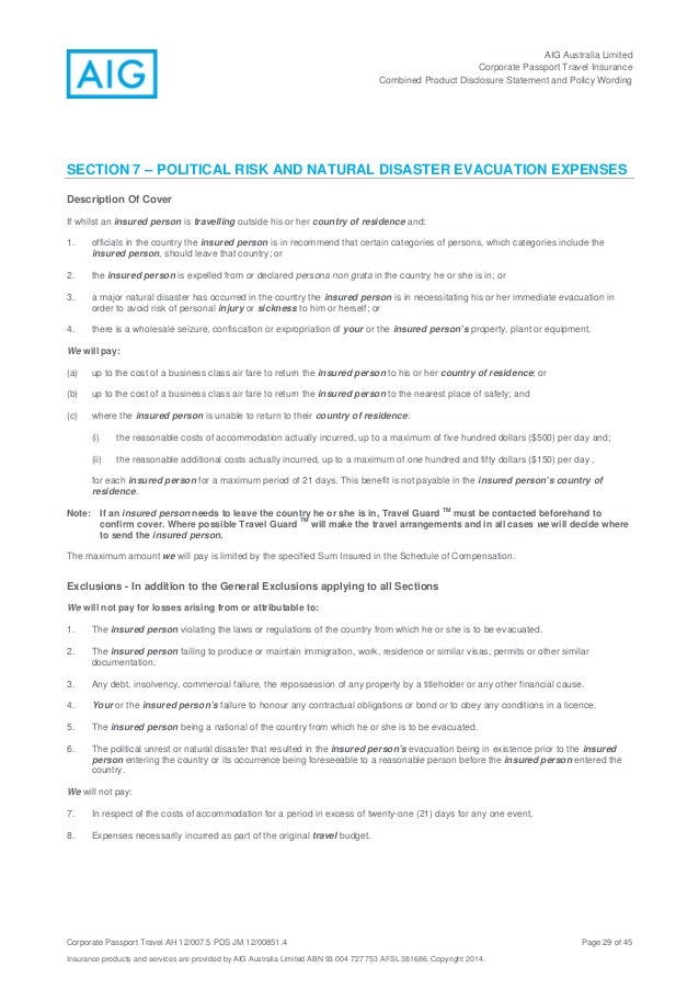 AIG Australia ABN 67 007 483 267 AFS Licence No.230903 549 St. Kilda Road Melbourne Vic 3004 is authorised to Deal (including issue) and Advise in relation to general insurance products, including travel insurance and sickness and accident insurance products. AIG Australia is the ... Fetch Content